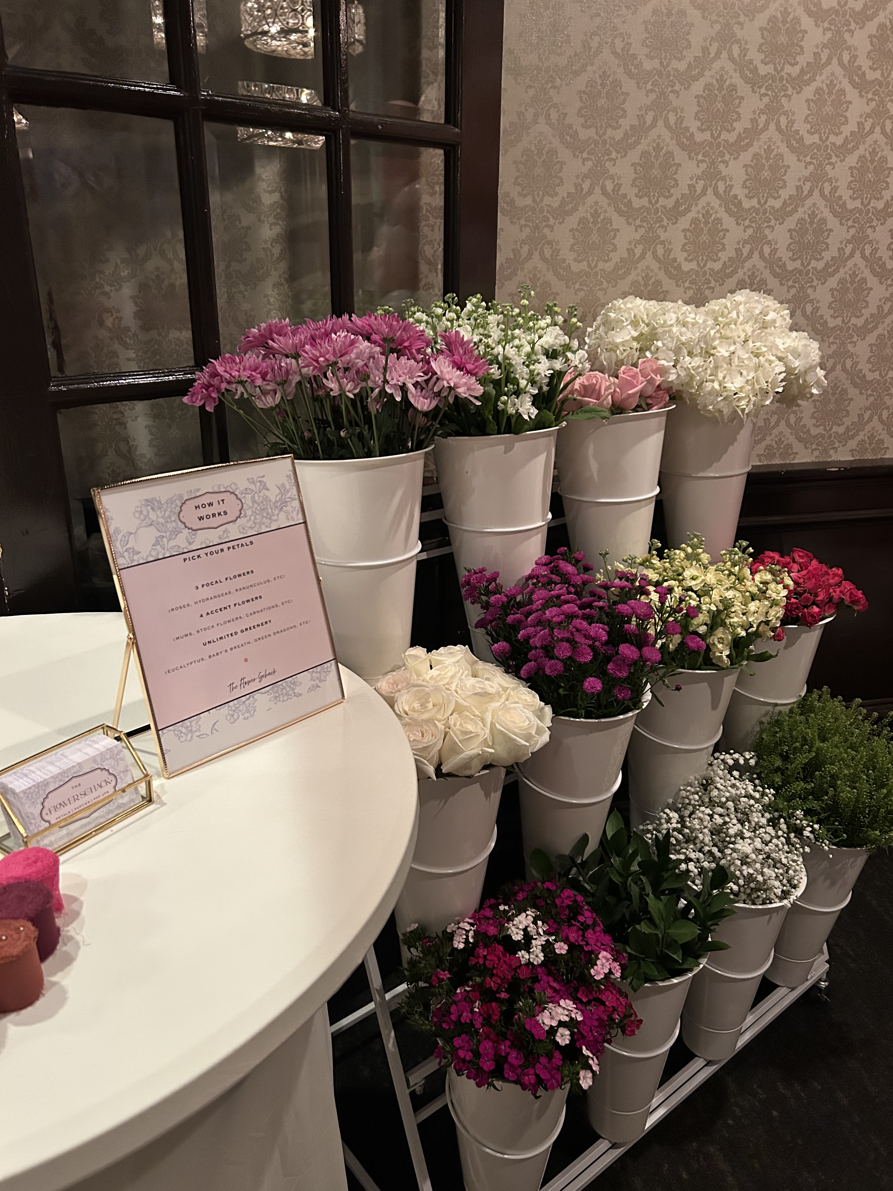 At The Flower Schack Bloom Bar, guests get to step into the role of florist and create their own beautiful bouquet. Our Bloom Bar is a hands-on, interactive floral experience where everyone can choose from a curated selection of fresh blooms, greenery, and seasonal stems to design something uniquely their own. Perfect for weddings, baby showers, birthdays, pop-ups, and brand events, it adds a fun and memorable touch while giving guests a gorgeous arrangement to take home.